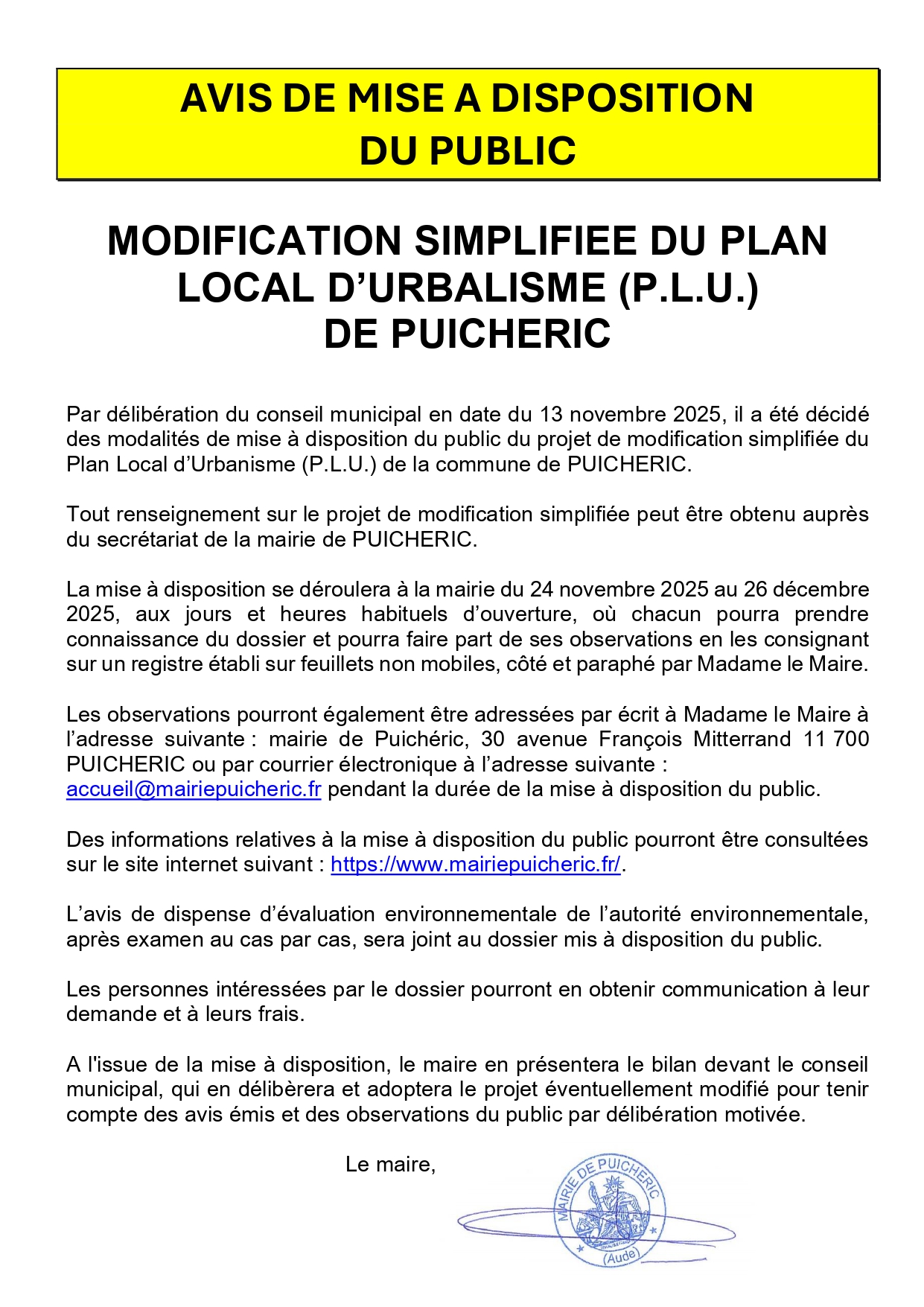 Il a récemment fait l’objet d’une modification simplifiée, actée lors de la séance du conseil municipal du 12 décembre 2024.